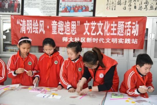 2026年4月2日上午,内蒙古师范大学民族学人类学学院联合师大社区、师大关心下一代工作委员会及南门外小学,在师大家属区老干部活动中心举办“清明绘风·童趣追思”文艺文化主题活动。南门外小学约30名学生与学院志愿者互动,气氛温馨。